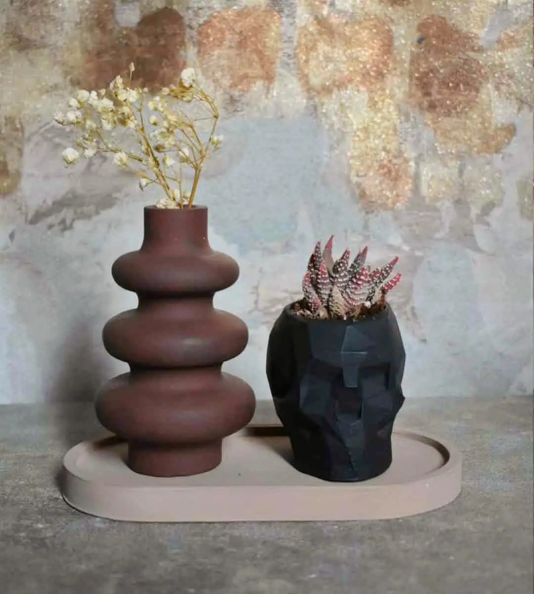 Add a touch of modern charm and botanical beauty to any space with this curated Home Décor Set. Featuring a sleek oval tray, a small wavy ceramic vase filled with delicate dried baby’s breath, and a bold skull-shaped pot housing a low-maintenance Haworthia succulent, this set strikes the perfect balance between soft and edgy. Whether styled on a coffee table, shelf, or workspace, it’s designed to elevate your interiors effortlessly.