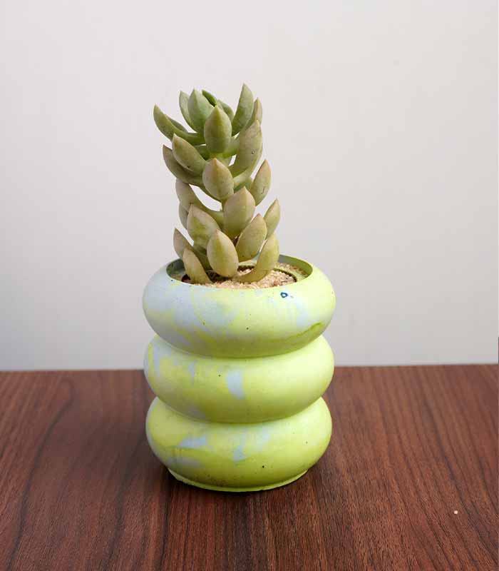 A beautiful trailing succulent known for its soft, bead-like leaves that form long, cascading tails. Perfect for hanging pots or shelf displays, it adds a lush, flowing texture to any space. Low-maintenance and drought-tolerant, Donkey Tail thrives in bright light and needs minimal watering — a stunning yet easy-care choice for indoor décor.