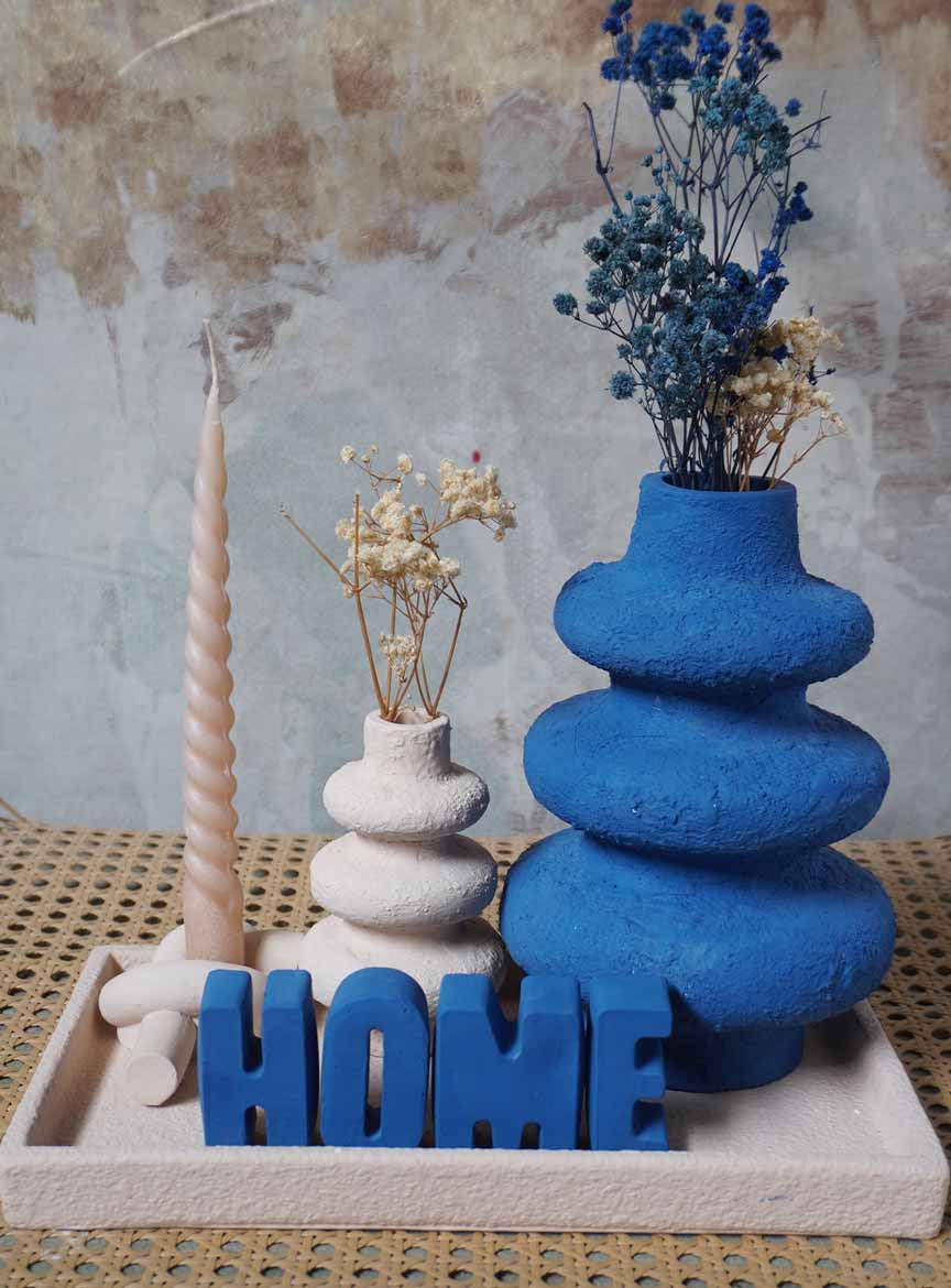 Bring a touch of soft luxury to your space with this beautifully curated decor set. Featuring a big Rectangle Tray , a Big wavy vase along with small wavy vase, Scented Twisted Candle with Knot Holder, and Beautiful HOME Letters, this collection blends minimal design with romantic warmth. Perfect for styling your coffee table, console, or vanity — it adds charm, texture, and a cozy glow to any corner of your home.